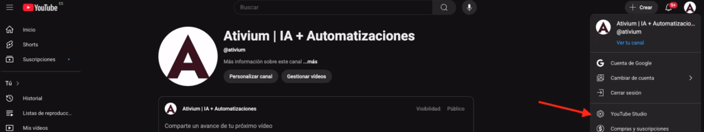 2) Accede a YouTube Studio.